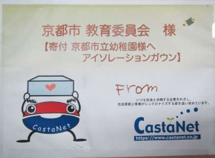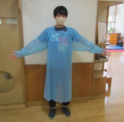 安全にウィルス対策ができるよう,アイソレーションガウンを(株)カスタネットよりいただきました。