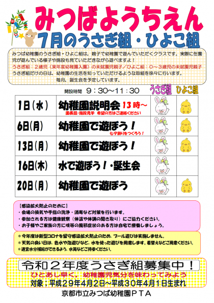 7月の教育相談(うさぎ組・ひよこ組)のお知らせです。