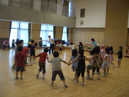 その後,じゃんけん列車など,仲良し遊びをしているところを見ていただきました。