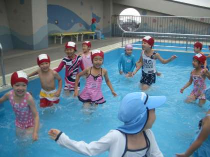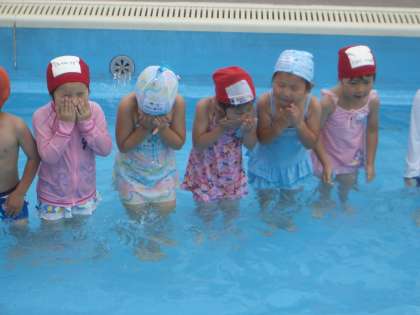 3歳児の時には,友達が遊ぶ水しぶきがかかるのも嫌だった子どももいたようですが,毎年友達と一緒に楽しんで遊んでいるうちに,へっちゃらになったようですね。