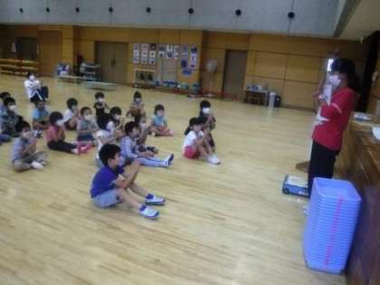 今日,5歳児ゆり組は,体重測定の前に,手洗いについての保健指導を受けました。