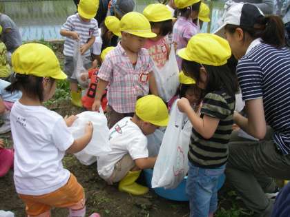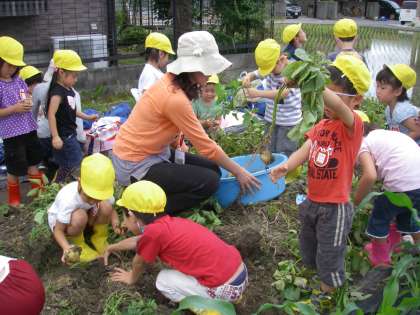 ジャガイモ畑も少しイモが見えるようにしてくださっていたので,「あっ,おイモがある!」と見つけた子どもたちは大喜びでした。
