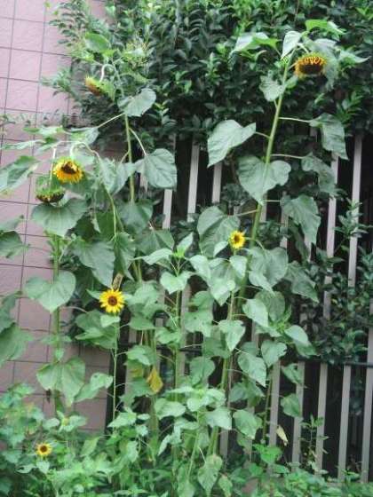 ヒマワリは,雨のせいか,種ができてきたためか,もう下を向き始めています。