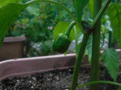 年長児ゆり組が1学期にグループごとに野菜を植えました。梅雨明けからどんどん大きくなってきています。葉っぱが大きくなったり,茎が伸びたりしてきているので,今日は支柱を立てて倒れないようにしました。