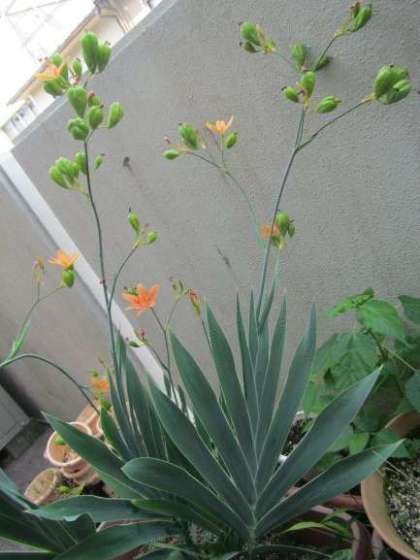 (写真のひおうぎはやや肥料不足か,葉の勢いが弱いようですが…)