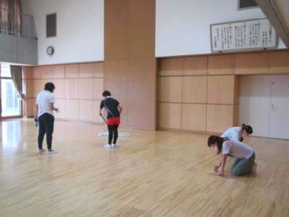 ひとつは,遊戯室の床をきれいにして,保護剤で拭き上げました。(写真)