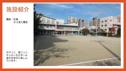 みつば幼稚園の保育室(1階)と園庭・広場です