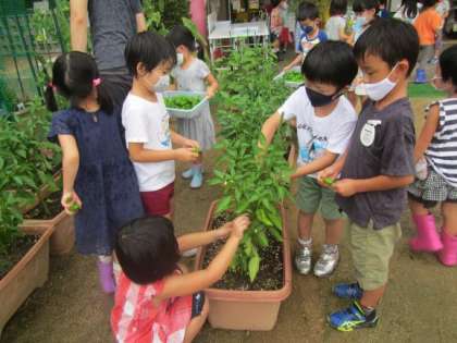 5歳児が野菜を収穫しました。