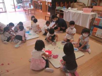 そのうち皿から出して床に広げて遊びだす子もいたので,
