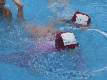写真を撮っても,もぐっているので,水泳帽しか写りません。