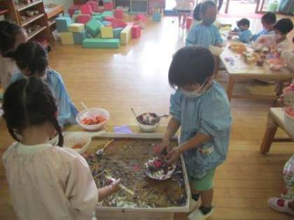 数日前から、ケーキやかき氷をつくって遊ぶことを楽しんでいたもも組。