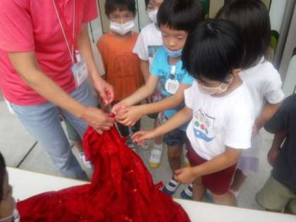 目の前で白い布の色がどんどん変わっていく様子をドキドキしながら見ました。