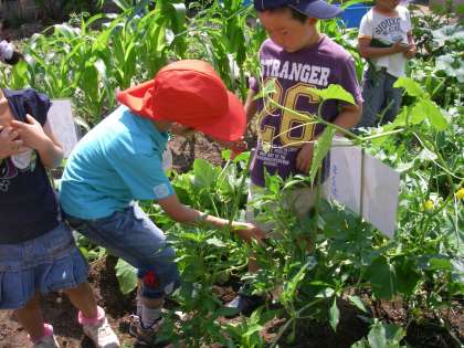 昨日,5歳児の子どもたちが畑の草ひきをしてくれていました。