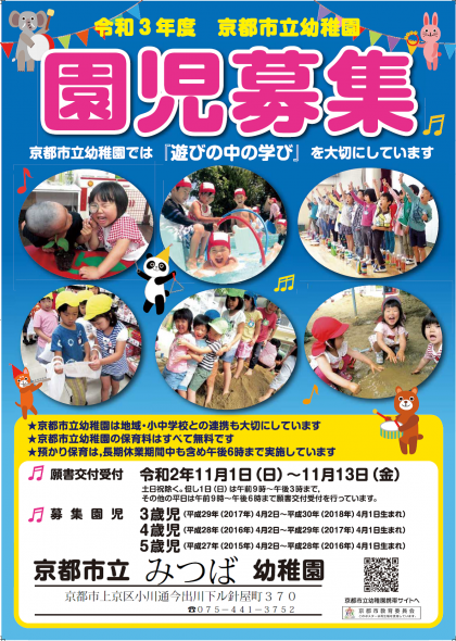 来月の11月1日から,令和3年度入園願書の交付・受付を開始します!