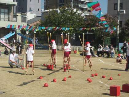 ゆり組は,竹馬でいろいろな乗り方に挑戦したり,縄と「よさこいカンフー」でみんなにエールを送りました!