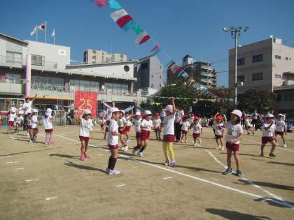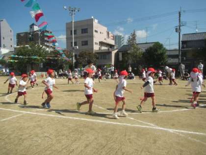 秋空のもと,元気いっぱいに体操,かけっこをしました。