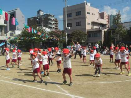 そして,5歳児のよさこいカンフーを応援席で歌って真似て踊ったりして,自分たちのプログラムではないところでも,おおいに楽しんでいました!
