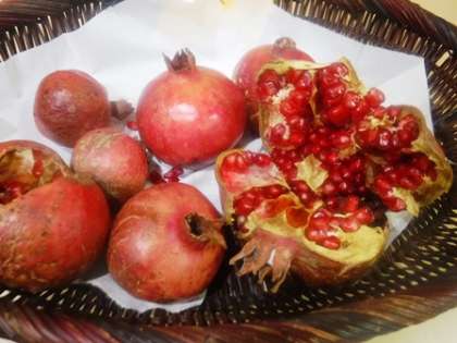 自分達で収穫した大事なザクロ。お家の人と食べることを楽しみに持ち帰っています。旬の味覚を家族で楽しんでくださいね。