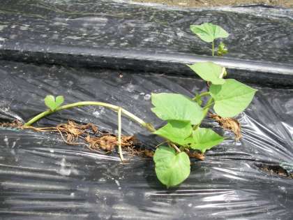 6月に植えたサツマイモの苗が,「暑いのでどうかな」と心配していたのですが,しっかりと根づいていました。かわいい新芽も次々と見えています。