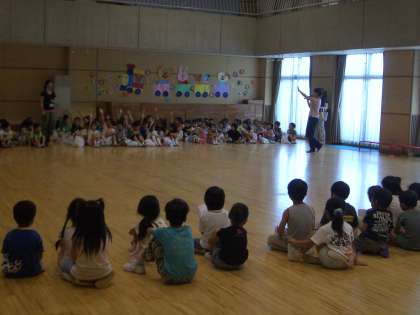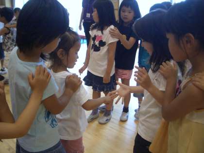 まずは,全員で「かもつれっしゃ」のジャンケンゲームをして遊びました。