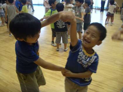 それから,一緒に「げんこつやまのたぬきさん」や「なべなべ」をして遊びました。