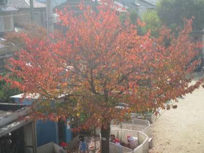 みつば幼稚園の桜の木が紅葉し,とてもきれいです。