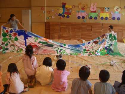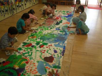これは,NPO法人 アース・アイデンティティ・プロジェクトが主催する「世界一大きな絵2012 in 都道府県」の取組に京都市教育委員会が賛同し,京都市立幼稚園16園も参加しているものです。