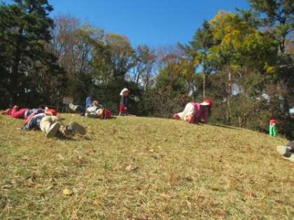 遊具だけでなく,芝生の上を転がって遊んだり,