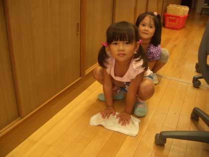 4歳児のばら組の子どもたちが拭き掃除をしていたのですが,職員室までやってきて,