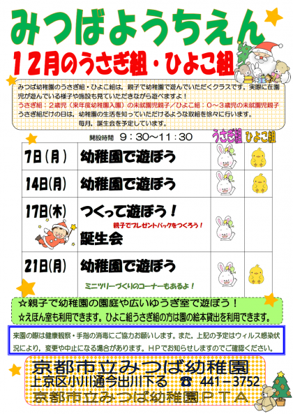 12月の教育相談(うさぎ組・ひよこ組)の予定です