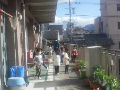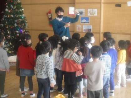ゆり組のプレゼントは・・・あれ?あると思っていたテラスにありません。でもきっと来てくれていたはず・・・「もしかしてあっちかな」「今,赤いのが空に見えた!」ゆり組の子どもたちは思いを巡らせながら探します。なんと,遊戯室のクリスマスツリーの下に手紙とプレゼントがありました!「やったあ!やっぱりサンタさん来てくれたんだ!」思わず歓声をあげる子どもたち。しかも,幼稚園のうさぎや動物たちの分までプレゼントがあります。「人参はうさぎたちかな。小松菜はおかめ(インコ)ちゃん。キャベツもある,これもゆきちゃん(うさぎ)に明日あげよう!」サンタさんの思いをしっかり受け取っているゆり組でした。