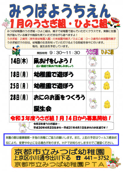 みつば幼稚園教育相談(うさぎ組・ひよこ組)1月の予定
