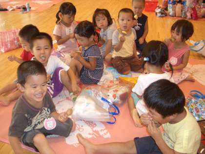 7月最後のプールから出たら,なんとおやつのジャガイモが待っていました。