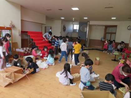 ゆり組の子どもたちは,お雛様をそっと箱から出し,