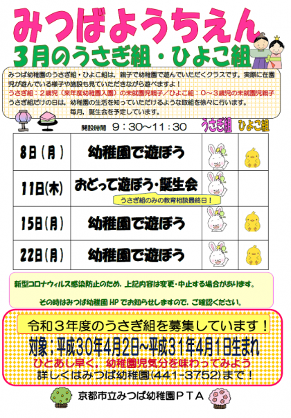 3月の教育相談(うさぎ組・ひよこ組)のお知らせ