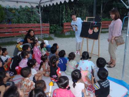 みつば幼稚園は,PTAの方々による「わなげ」と幼稚園の教員による「大型紙芝居と花火シアター」の2ブースを担当し,たくさんの方々に楽しんでいただきました。
