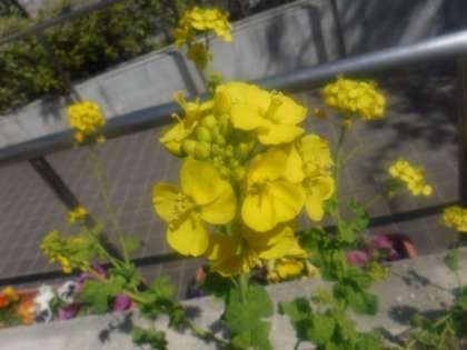 たんぽぽ組前の「山茱萸(さんしゅゆ)」小さな黄色い花です
