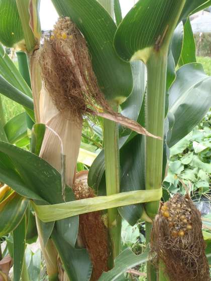 ・・・ もう十分収穫時です。おいしくなったのを先にキャッチして,誰かさんが,どうも食べてしまっているようです。「おいしかったよ。ごちそうさま」と空っぽのコーンが残されていました・・・・。(残念!)
