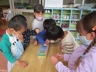 ごっこ遊びにも風車を持っていくなど,肌身離さず大切にしている姿がとても可愛らしかったです。