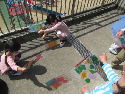 ベランダに出てみると,「わぁ!!きれい!!」色々な影ができたことに気付き大興奮。