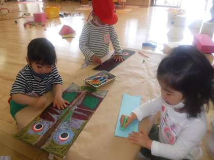 (写真は3歳児がこいのぼりをつくっている様子です。)