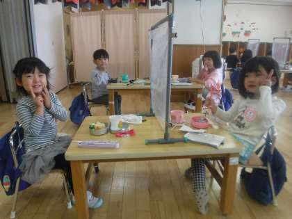 お弁当の時間になり,ワクワクしながらお弁当箱を開けると「見て見て!」「おにぎり入ってる!」「お肉大好き〜」「おいしい〜」と大好きなものがいっぱいで嬉しそうな笑顔!愛情たっぷりのお弁当にお腹も心も満たされていました。お家も方々,好きなものや食べやすい工夫などありがとうございます。