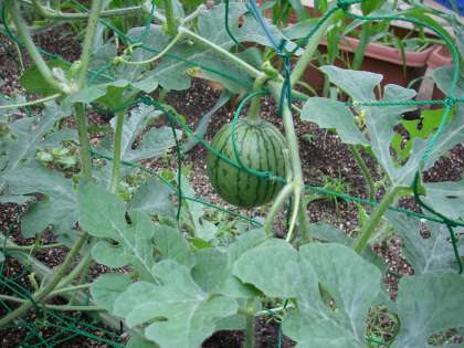 園庭の畑でいろいろなものが実り始めています。子どもたちもよく見ていて,「先生おなすができている」「きゅうりもおおきくなっている」と大興奮でお知らせに来てくれます。今年はじめて,賀茂なす・すいかに挑戦しています。賀茂なすはどんどん大きく,ま〜るくなってきています。すいかも2つ,3つと実をつけ始めました。うまく大きくなってくれるといいですね。いつ収穫ができるかととても楽しみです。