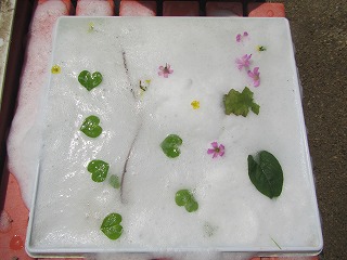 足にも泡を付けたり,お花の素敵なケーキをつくったりと色々な遊び方を見つけて楽しみました。