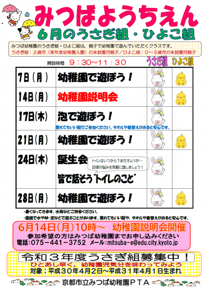 6月みつば幼稚園教育相談(うさぎ組・ひよこ組)