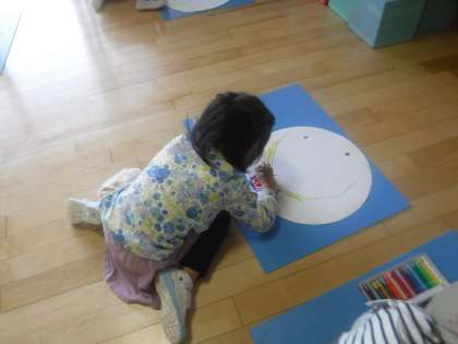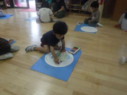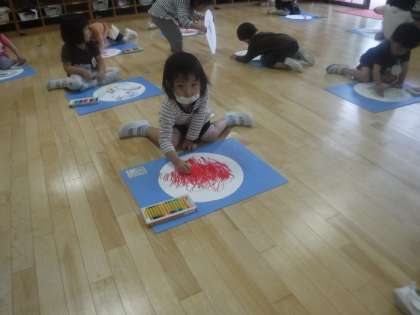 子どもたちは,自分の好きな色を言ったり,その色が歌に出てくると嬉しそうに聞いたりしていました。