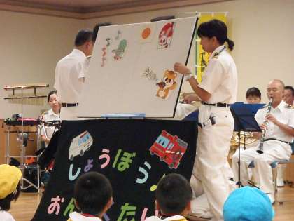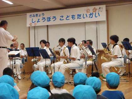 消防音楽隊の演奏では,子どもたちが知っている歌もたくさんしていただき,一緒に歌ったり踊ったりして楽しみました。