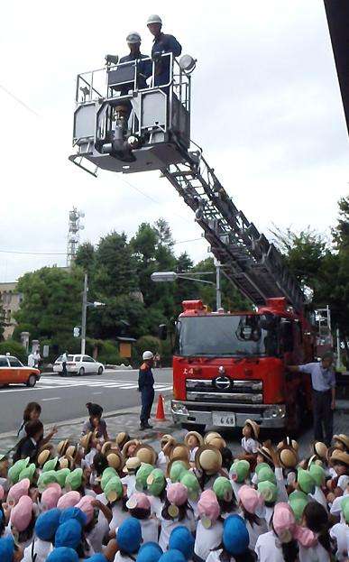 はしごがぐんぐんと伸びていくのを興味をもって見ていました。