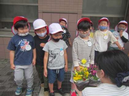 みつば幼稚園の5歳児ゆり組が,隣接の高齢者施設に幼稚園に咲いている花を届けました!