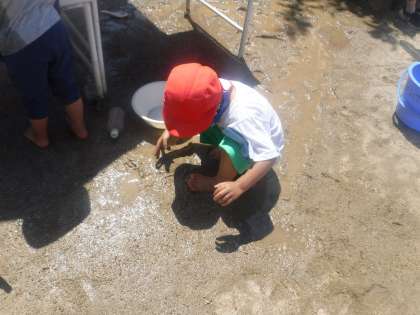 朝から子どもたちは色水や泡,泥などを楽しんでいました。